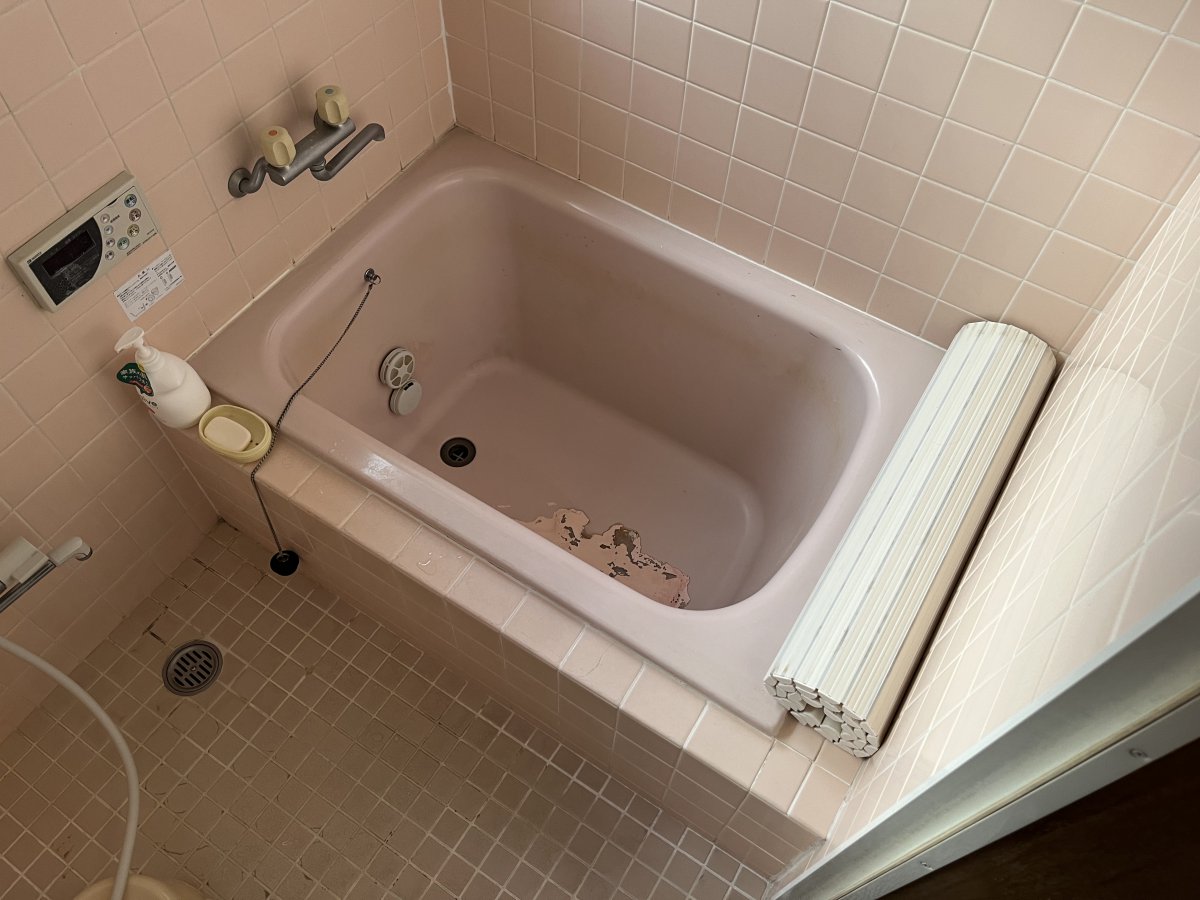 越谷市内、築35年ほどの戸建1階のお風呂の浴槽交換工事です。