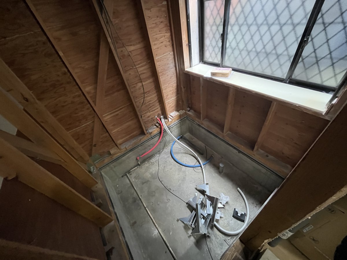 出窓サッシ部分は再利用として、TOTO製システムバス「サザナ」