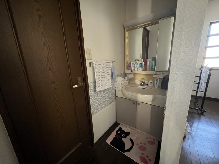 埼玉県越谷市、築25年ほどの戸建て2階の洗面台交換工事です。