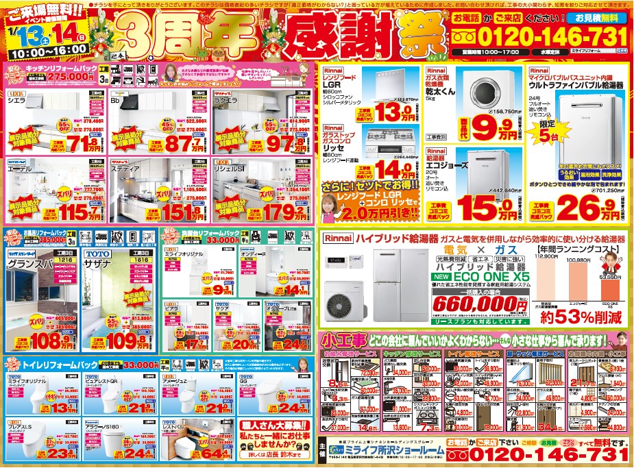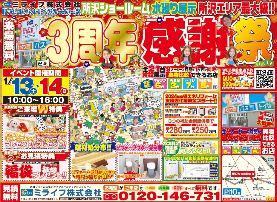 ぜひこの機会に、 ミライフ所沢ショールーム へお越しください。