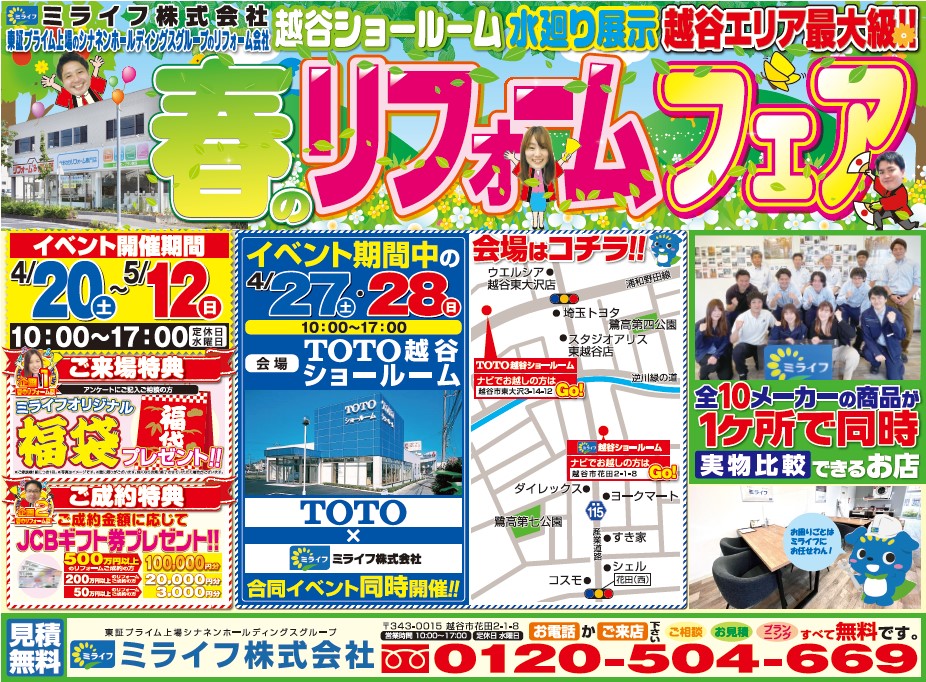 ぜひこの機会に、 ミライフ越谷ショールーム へお越しください。