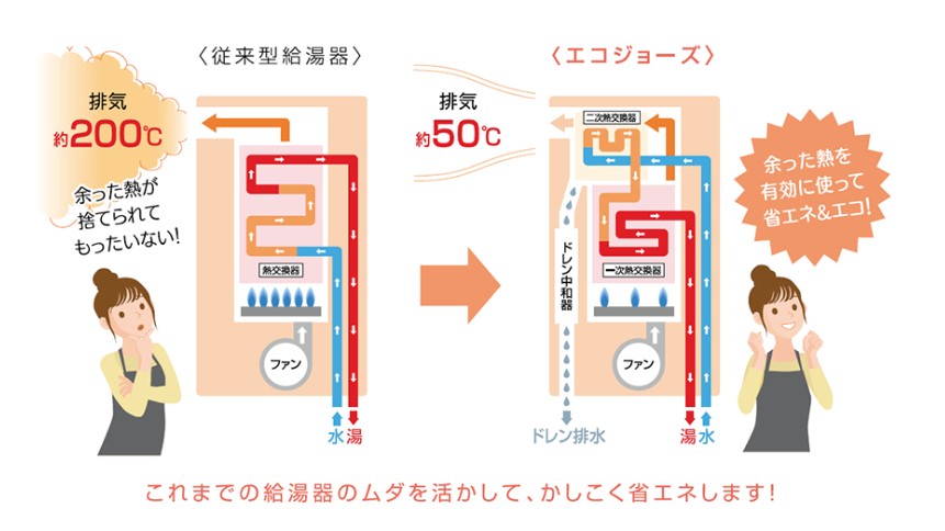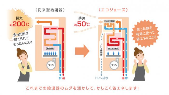 ・熱を無駄なく使うエコな給湯器「エコジョーズ」