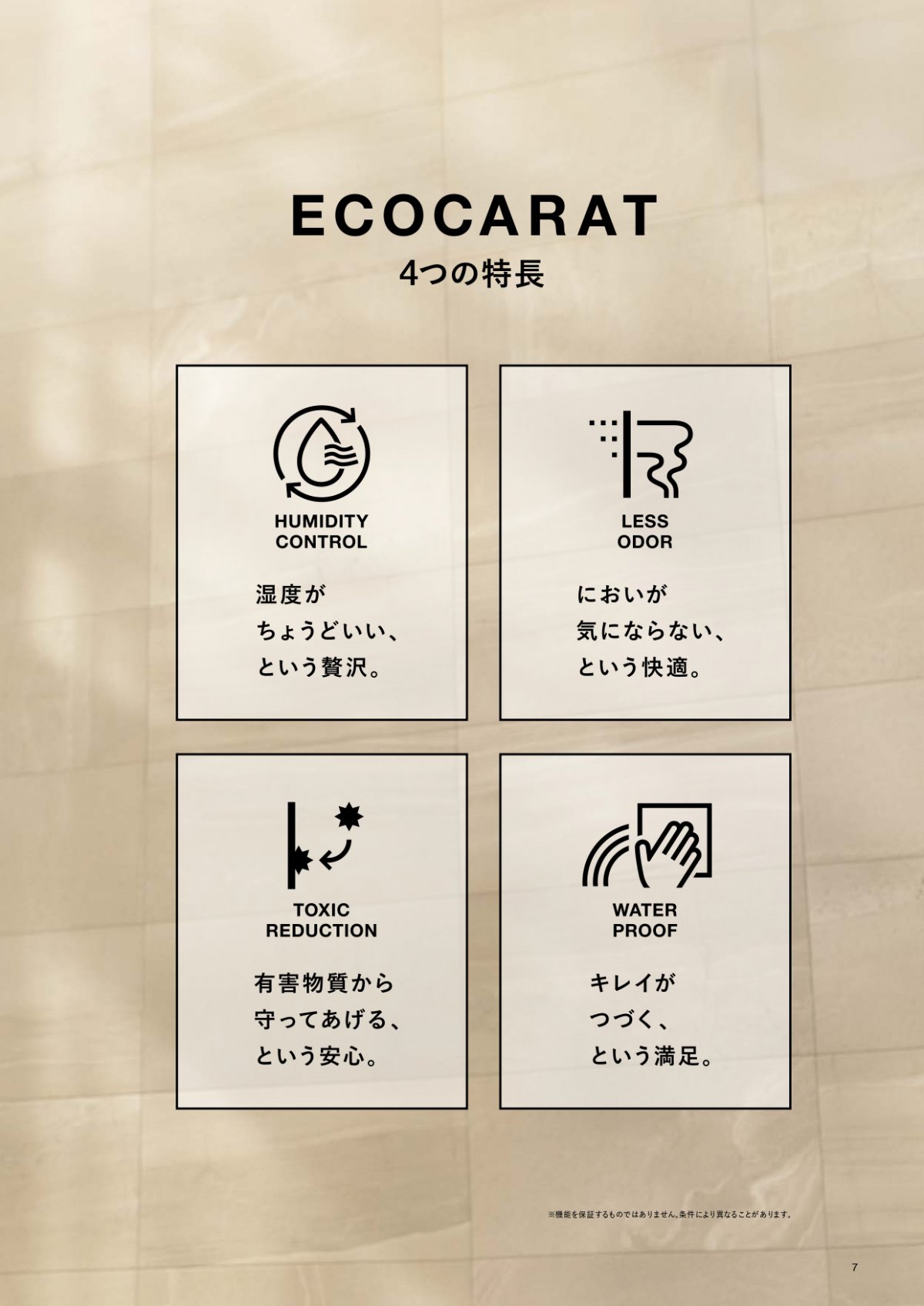エコカラットは脱臭調湿に優れたタイル商品となっています。