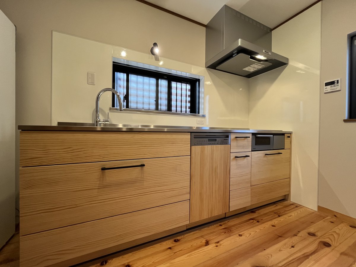 無垢の木のキッチン。床材にもマッチした空間になりました。