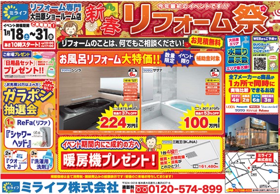1月はミライフ各地のショールームでリフォームフェア開催!!