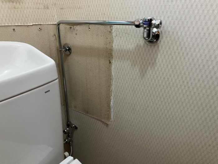 給水配管の位置が右壁にあり、通常のトイレをそのまま設置するだけでは