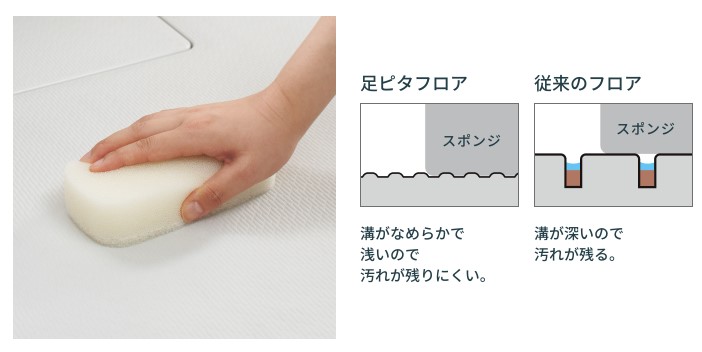溝がなめらかで浅いので水滴や汚れが残りにくい