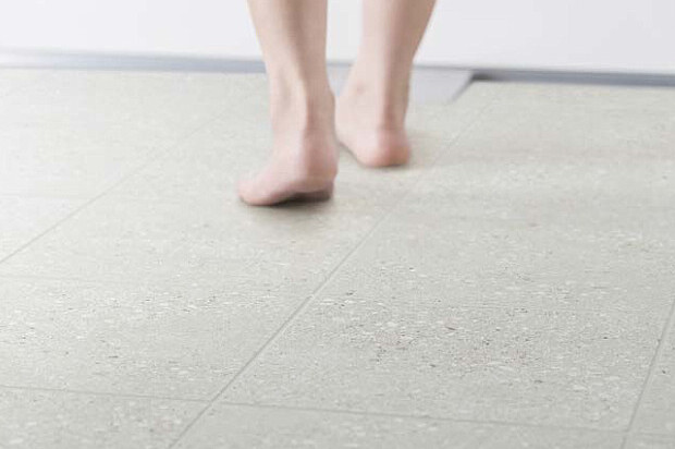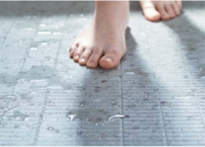 熱が伝わりやすい磁気タイルはお湯をかけるとすぐにあたたまる