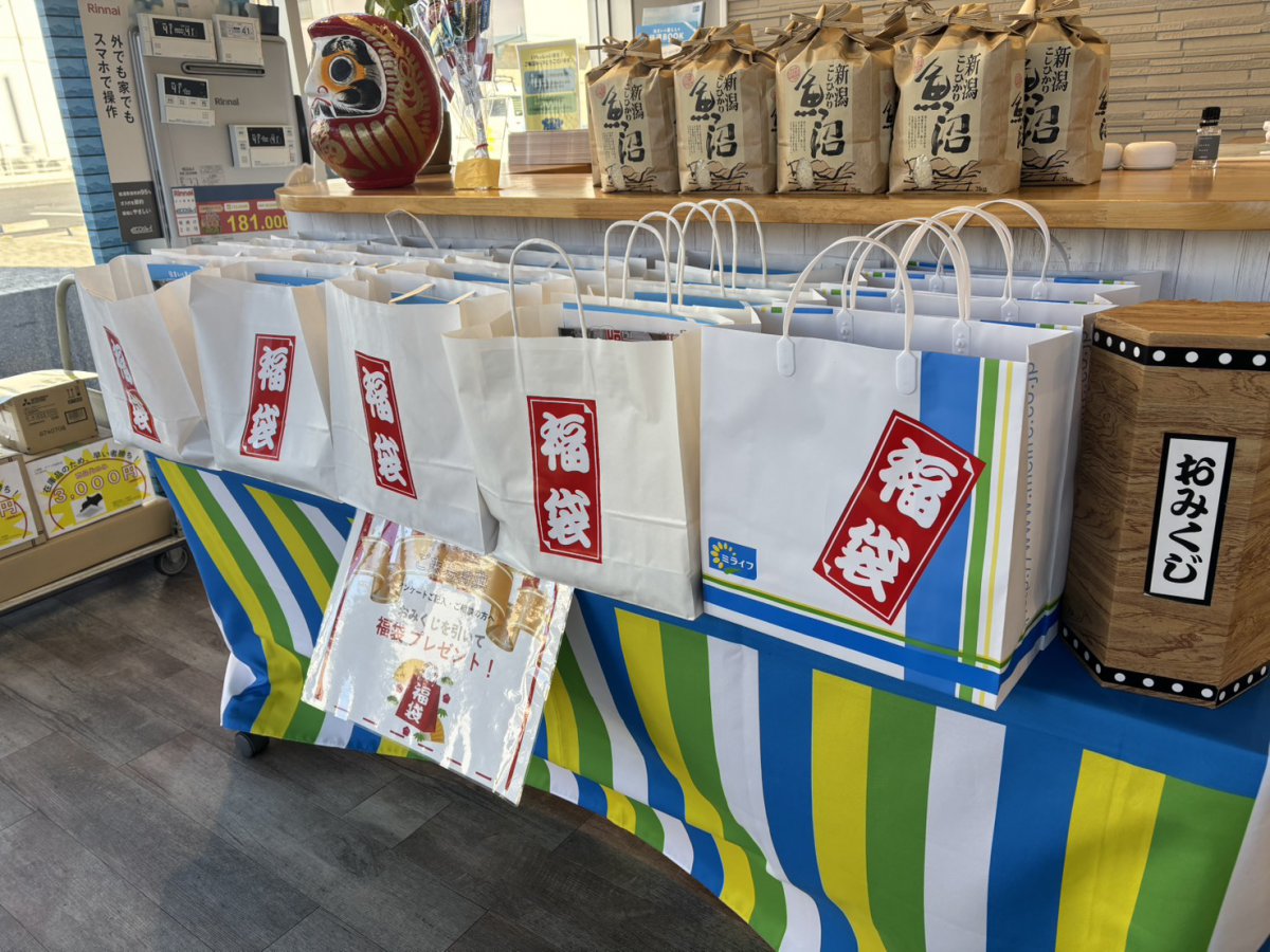 日用品の入った福袋をお渡ししております。