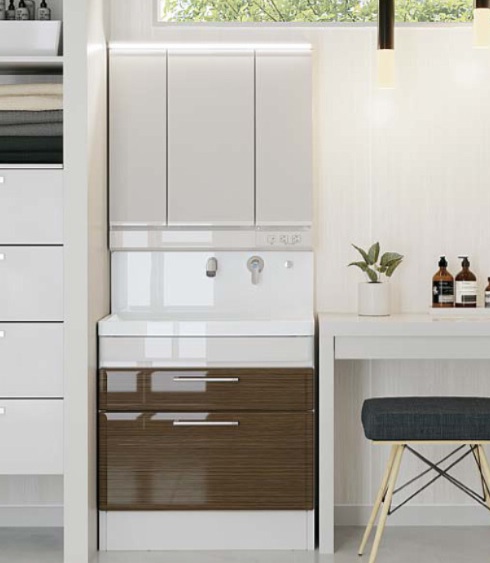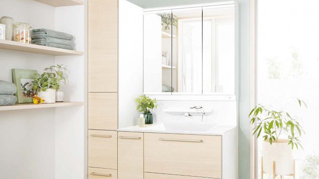 引き出し収納やミラー裏収納で、洗面周りがすっきり整理整頓。毎日の身支度が快適!