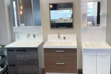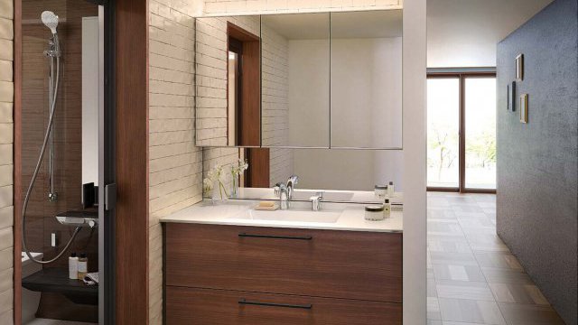 最新デザインの洗面台で、清潔感と高級感のある空間に。インテリア性もアップ!