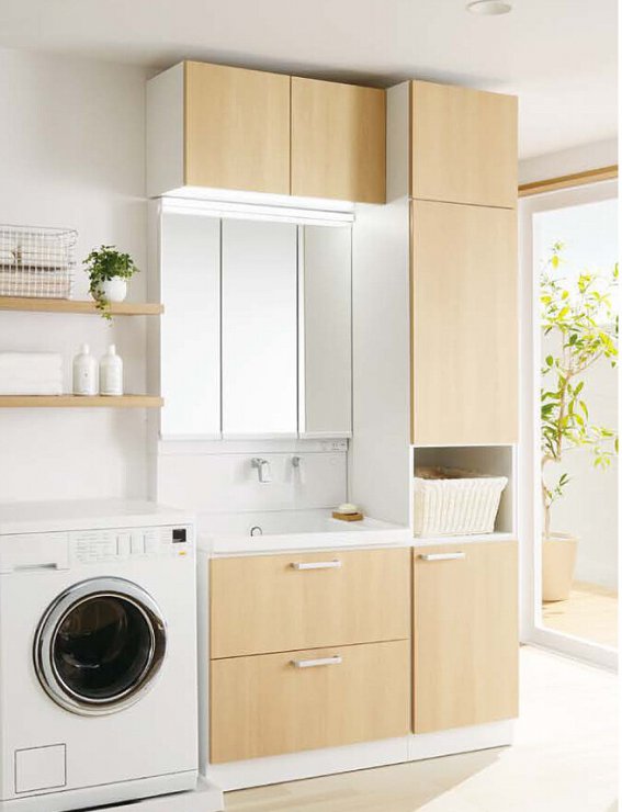 お掃除しやすい陶器ボウルをはじめ、家事や身支度がはかどる機能が満載。