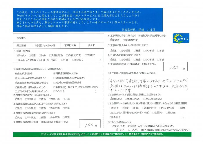 最後はきれいに掃除までして下さり、大変ありがたかったです。
