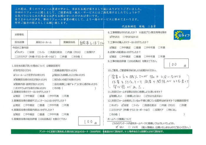 営業の方と職人さんが協力し合いながら作業を行なっていて、両者の関係がとても良くて安心感がありました。