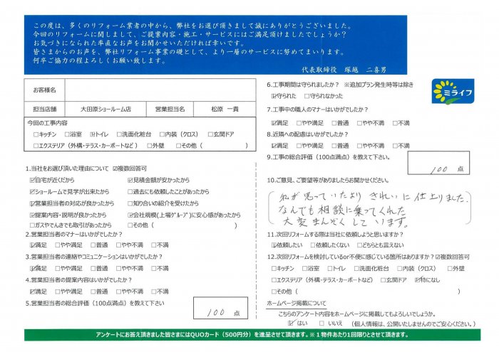 なんでも相談に乗ってくれた、大変まんぞくしています。