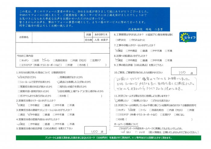 リフォームをするとしたら、ミライフさんと決めてます。