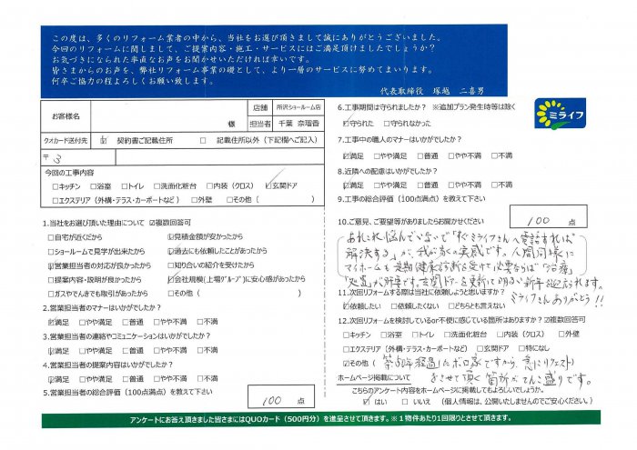 あれこれ悩んでいないで、「すぐミライフさんへ電話すれば解決する」が我が家の実感です。 人間同様にマイホームも定期健康診断を受けて必要ならば「治療」「処置」が肝要です。 玄関ドアを更新して明るい新年を迎えられます。 ミライフさんありがとう!!