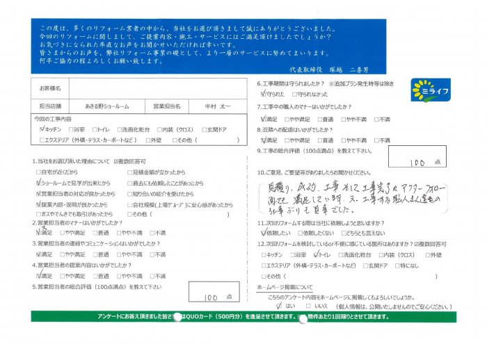 見積り、成約、工事そして工事完了やアフターフォロー面でも満足しています。