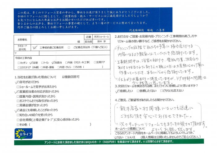 次のキッチンのリフォームでもまた相談させて頂きます。