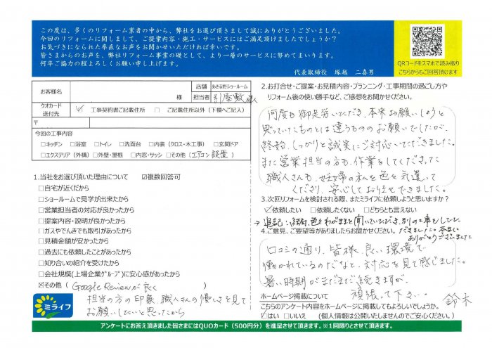 お願いでしたが、終始しっかりと誠実にご対応いただきました。