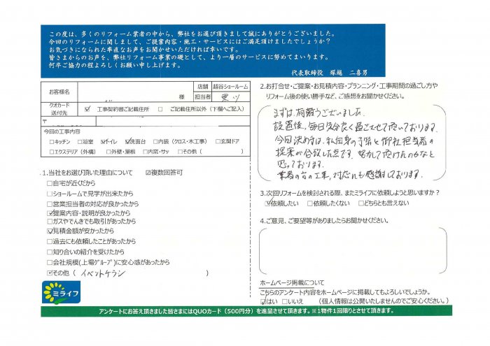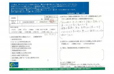 努力して頂けたのかなと思っております。業者の方の工事、対応にも感謝しております。