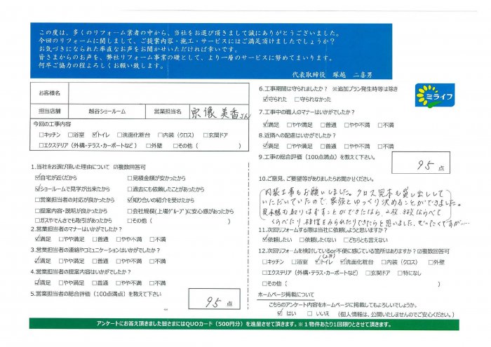 クロス見本も貸し出ししていただいていたので、家族とゆっくり決めることができました。