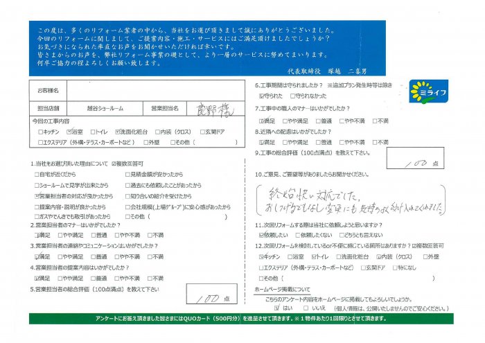おしつけるでもなし、変更にも気持ちよく受け入れてくれました。