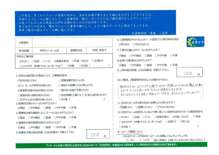 所沢市 M 様