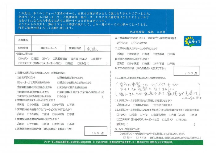 職人さんとの連系もあり、最後まで見届けてくれました。