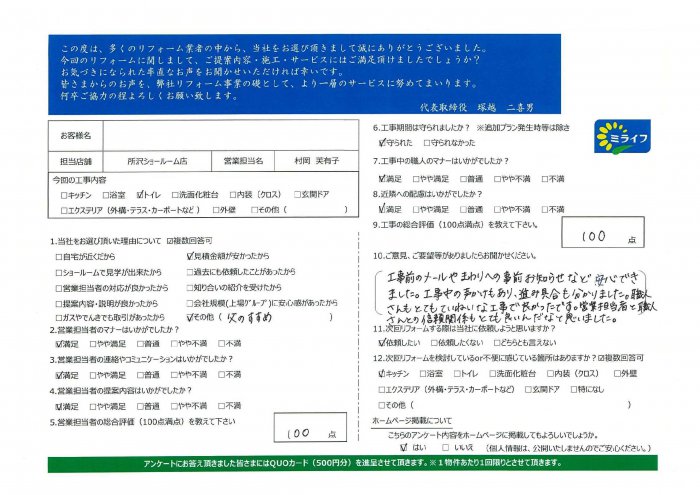工事前のメールやまわりへの事前お知らせなど、安心できました。